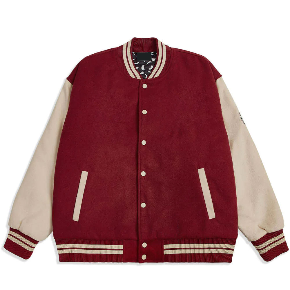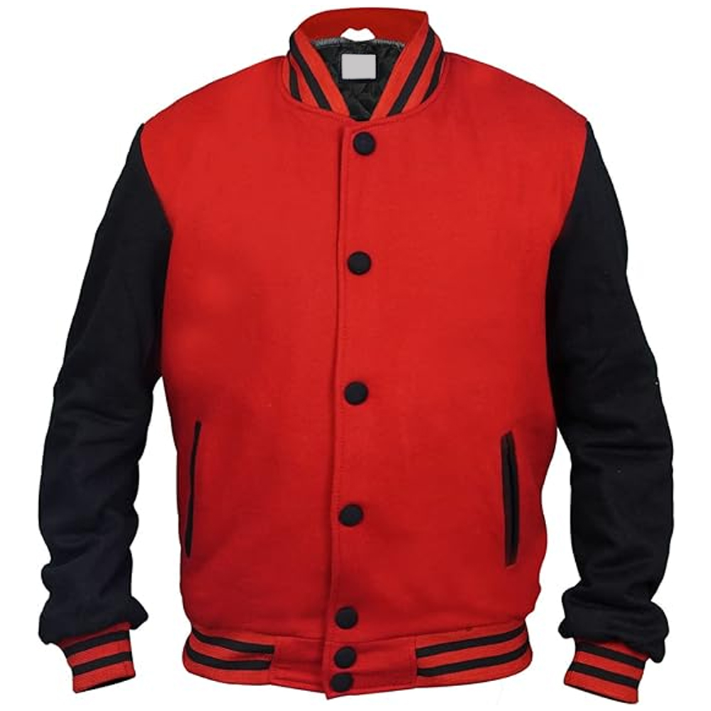 Varsity jackets, also known as letterman jackets, are a classic piece of athletic-inspired apparel. Traditionally worn by high school and college athletes to represent their sports teams, they are characterized by a combination of wool bodies and leather sleeves or detailing. These jackets feature ribbed cuffs and a ribbed waistband, with a button-up front for a tailored fit. Often embellished with embroidered patches, chenille letters, or team logos, varsity jackets symbolize achievement and team spirit. Known for their warmth and comfort, they are perfect for casual, sporty looks and are available in a variety of colors, making them a popular fashion choice for both athletes and non-athletes alike.